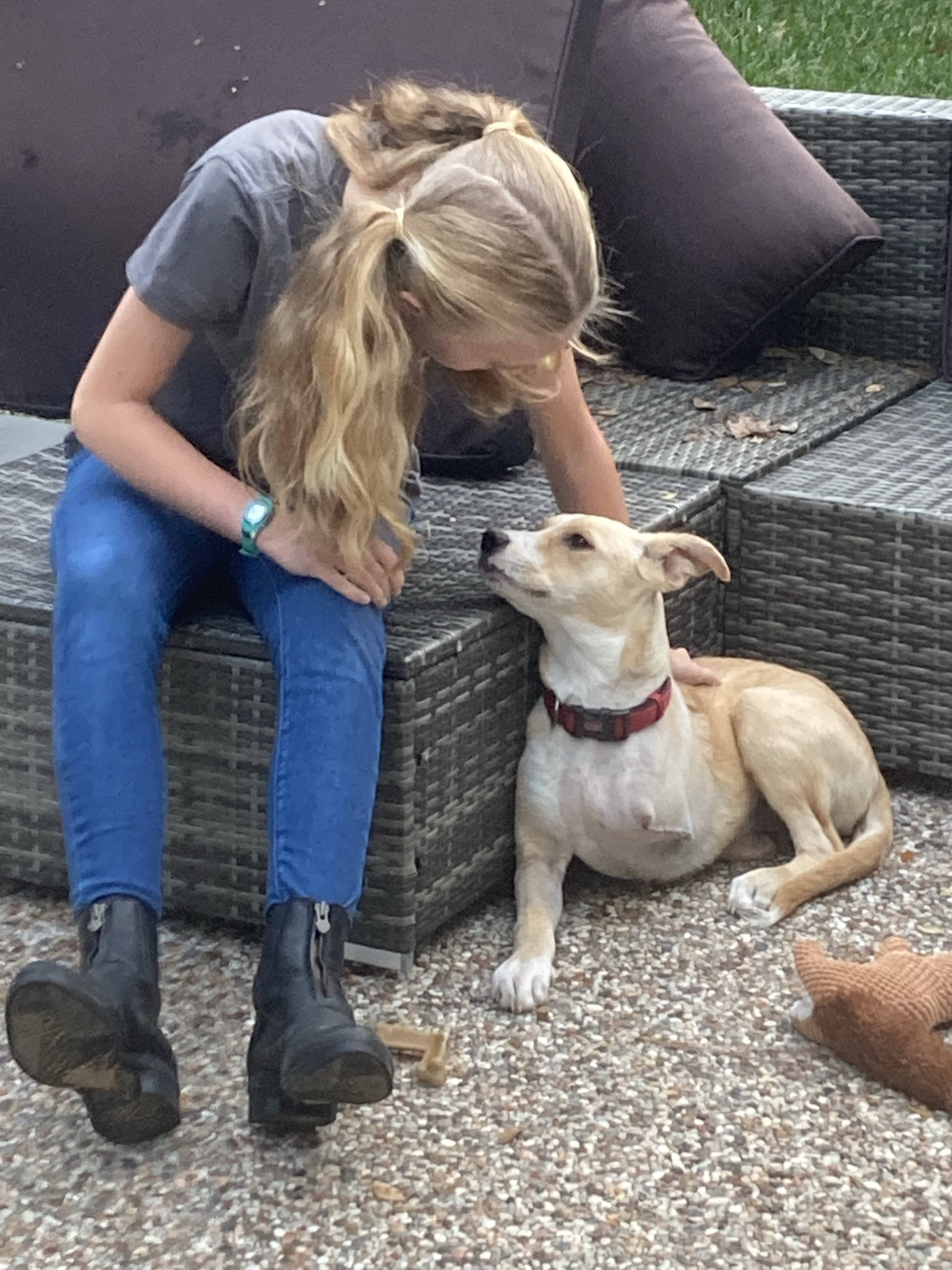 The vet took her to their ranch for the amputation and to make sure she’s healthy. She joined us last Friday. She took to Colin right away and has slowly agreed that the rest of us might be ok too.