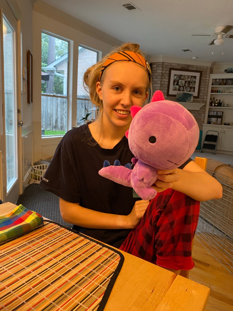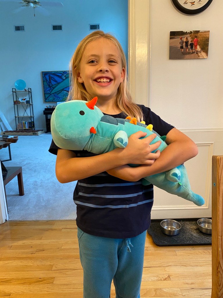 Kids were pleased when their new Dino stuffies arrived. They are characters from a web comic (“Dinosaur”) about mental health.