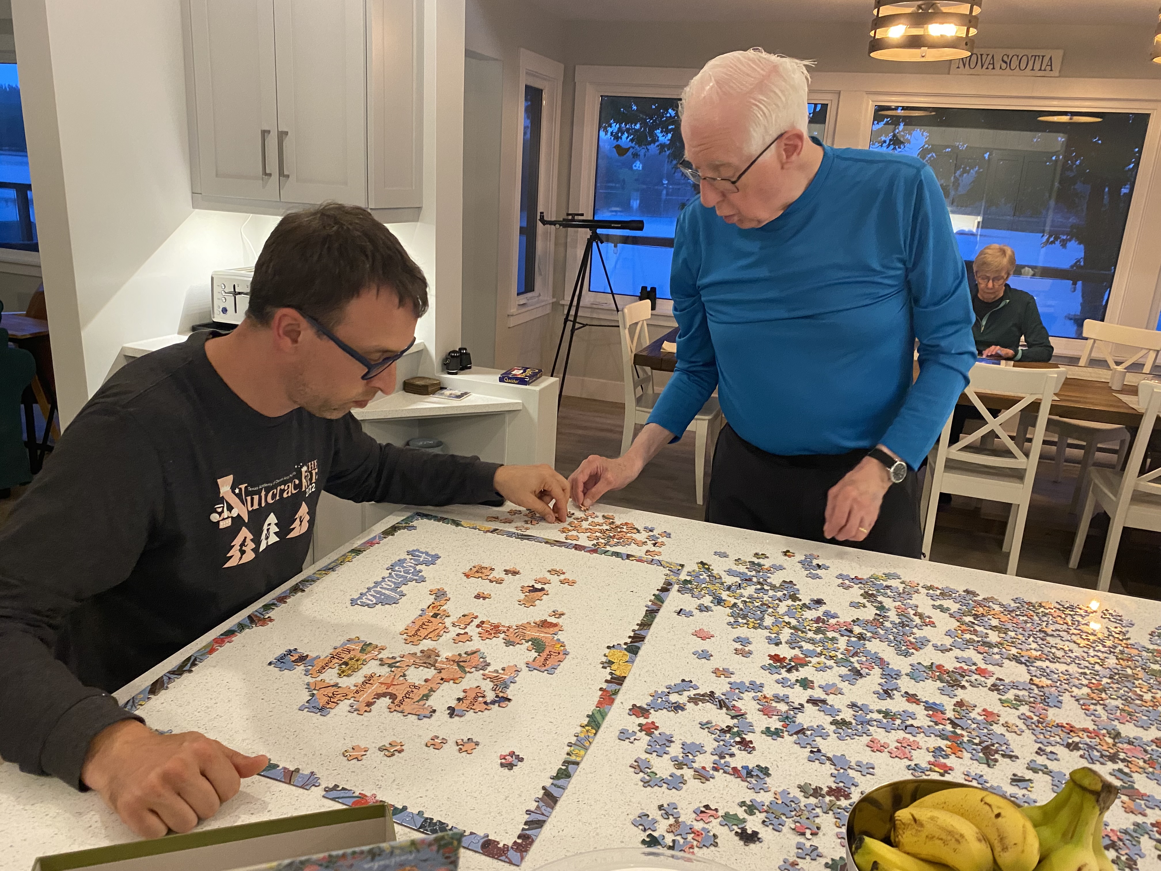 Hello! it’s kind of hard to believe that we have been on the road for 20 days, this being my 21st post (I started with day 0.5 before we left), so I’m really happy! I’ll do a small recap to show what we have seen before. we have passed through: Texas, Louisiana, Mississippi, Alabama, Georgia, Tennessee, Virginia, Maryland, Washington D.C., Pennsylvania, New Jersey, New York, Connecticut, Massachussets, New Hampshire, Maine, then on into Canada with New Brunswick and Nova Scotia. quite a lot of “new” places! 5, if you count! can you find them all on the list? you only found four? Haha! Nova Scotia means “NEW Scotland” in French! cool, right? anyway. some of the tourist stops we’ve been to are: various spots in D.C. (see those posts for details), The Edge, some On-Broadway theaters, and the World’s Largest Axe. between us all, we’ve finished who knows how many books, andd I’ve played video games for a very, very long time. this has been a wonderful trip, and I will continue to post for as long as this trip continues! anyhow… on to yesterday! the day started regularly, (as usual) and the day was off! the first notable thing that happened yesterday was that we finished the 1,000 piece puzzle that we started a 2 days ago. we are flying through these puzzles! the puzzle was a picture of Australia with a fancy decorative border. after that, I played around a bit with my games and puzzles then we had lunch. after lunch, me and Daddy went on a very long hunt for Pokemon on my app. the hunt was cool because we got to the closest Poke stop nearby, but we weren’t finding much around. our luck evened out quickly though, as there were many new Pokemon around as we went back home. the reason i said “evened out” instead of “improved” is because the rain started about 1/3 of the way home. once we got home, we introduced Grandmother and Grampy to the game Wingspan. Wingspan is a very complicated game, and this post is already getting long, so I won’t keep going. after a while, and a supper break before we finished, Daddy came in first with 117 points. Grampy and I came in second with 108, Laura and Grandmother got 3rd with 104, and Mummy unfortunateley came in last with 92. the game was fun, but at that point the day was over. after that, we had dessert, got ready for bed, and ended the day wonderfully. that’s all for this post, so goodbye. Farewell until the next post! -Colin