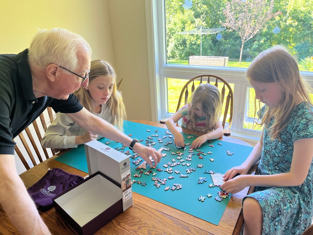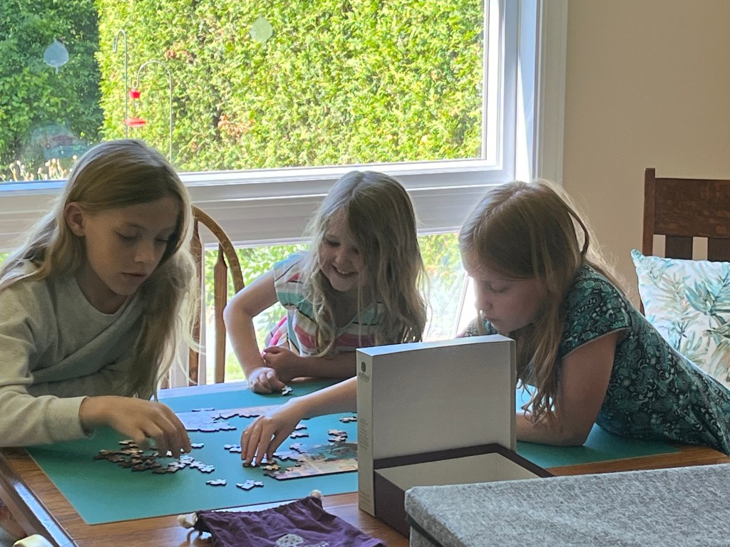 Hello again! day 6 was much more eventful than the last few days. once i eventually got up, which was only around 10:00, I had some breakfast and got dressed. I spent some tim eplaying video games while Daddy had a workout. the morning went by pretty fast, and then we had lunch. after that, my cousins, Ava and Isla, came over to play for a little while! we played downstairs with the LEGO for a long time. We came up to have a snack, and then we put together a puzzle. the puzzle was a Wentworth puzzle with kittens messing up a house that was all set up for a tea party. Wentworth is a company that makes puzzles with specially shaped pieces called whimsy pieces. they make the puzzles more fun than puzzles with just a bunch of square pieces. after we finished that, which took a while, they had to go. we said goodbye, and they left. We had some supper, and then Daddy and I went out for a bike ride. It was very long, and once we got back my legs were very tired. I had a bit of dessert, and then i went to bed. It was a very good day. Bye! -Colin