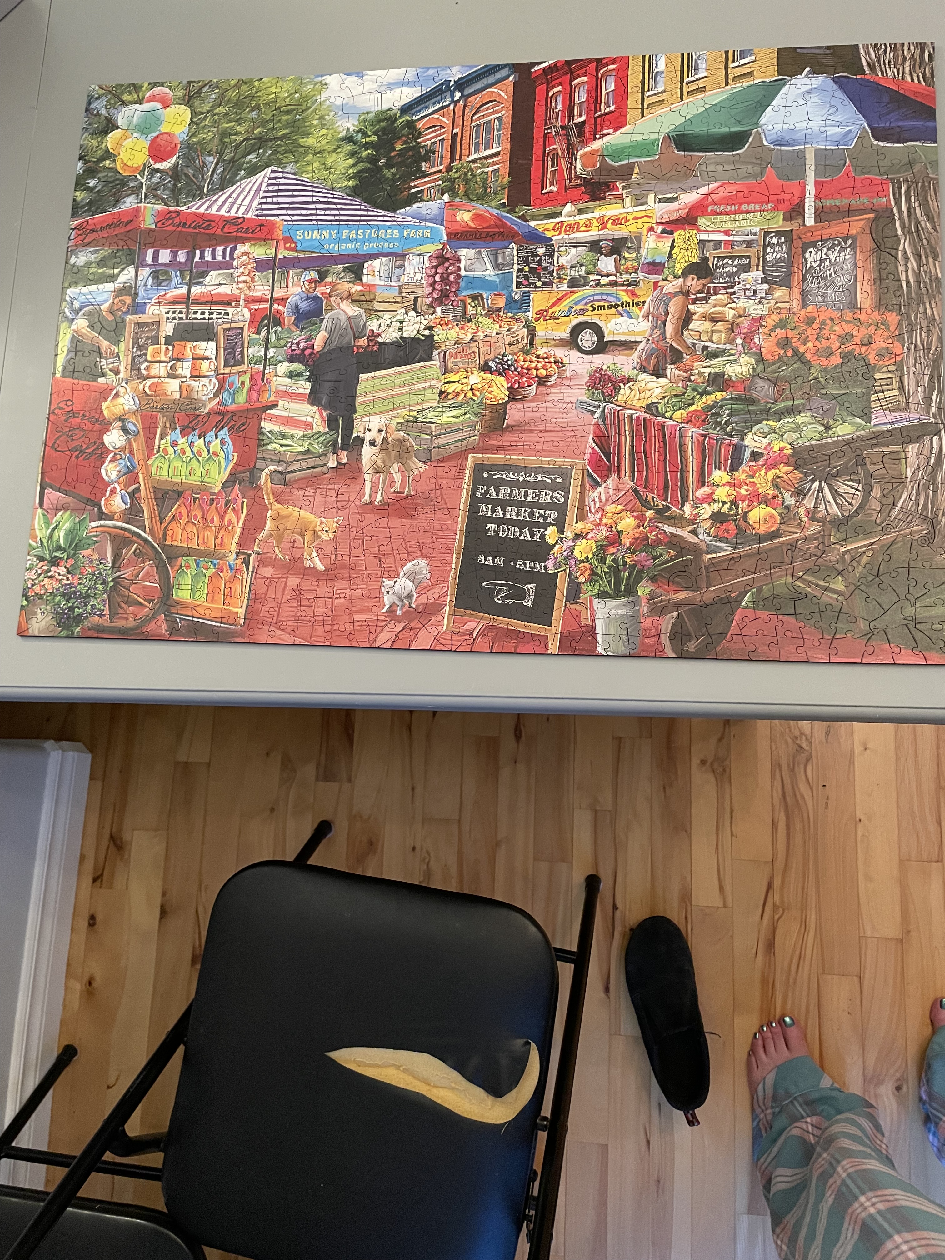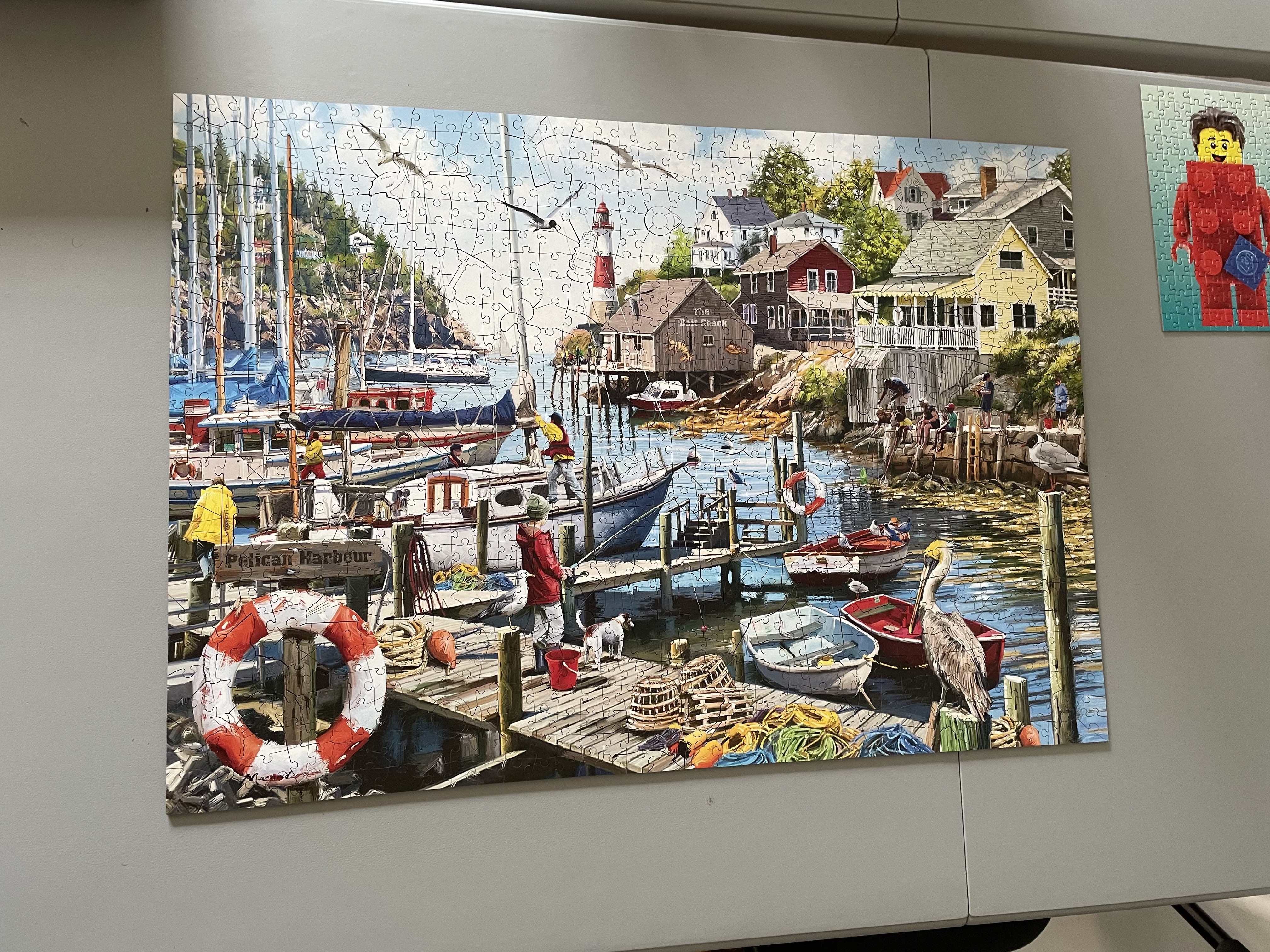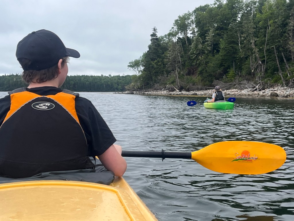 Hello! it’s been a busy few days, so I haven’t posted in a while. sorry! anyway, we have had a lot of stuff happen since my last post. We have made very good progress on our chairs. they are almost done! last Tuesday we had my friend Jordan over for a sleepover. we went for a kayak, played some games, and had fun. Jordan and I also went on a walk along the beach and found some cool sticks. We went out at high tide, so we didn’t have as much space to walk along. I hopped across to a big rock and realized I couldn’t really get back again. We both ended up with wet socks by the time we got back. on Wednesday they went home. on Friday, we went to Splashifax again with Jordan. we had a lot of fun. on Saturday, Mom arrived! we went on a run later that day. on Sunday we got a lot of chores done outside. On Monday, my aunt Penny and cousin Tim arrived. We had fun. We started up another large puzzle, and we are still working on it! Mom and I went on another run on Monday. On Tuesday my grandparents arrived. everyone except for Laura was here that day. on Wednesday Penny and Tim left. On Monday, Tuesday, and Wednesday, I had an arts and crafts camp with Jordan. On Monday we did some felting, on Tuesday we did modelling clay, and on Wednesday we made T-shirts and did beading. it made the mornings a little hectic, but it was fun. today, we have done some weeding, seen a few families of birds, and made a lot of progress on the puzzle. Mom and Dad went out for a hike most of the morning. also, last week, Dad and I were working to make our dock longer, since it was broken in a hurricane before we got the house. we managed to move the cribbing that held up the farther out end of the dock, which had rolled over onto the beach in the storm, back closer to where it’s meant to be! that sums up the last two weeks! it’s been busy, and a lot of people have been here. I’ll try to keep posting blogs more frequently. Bye! -Colin