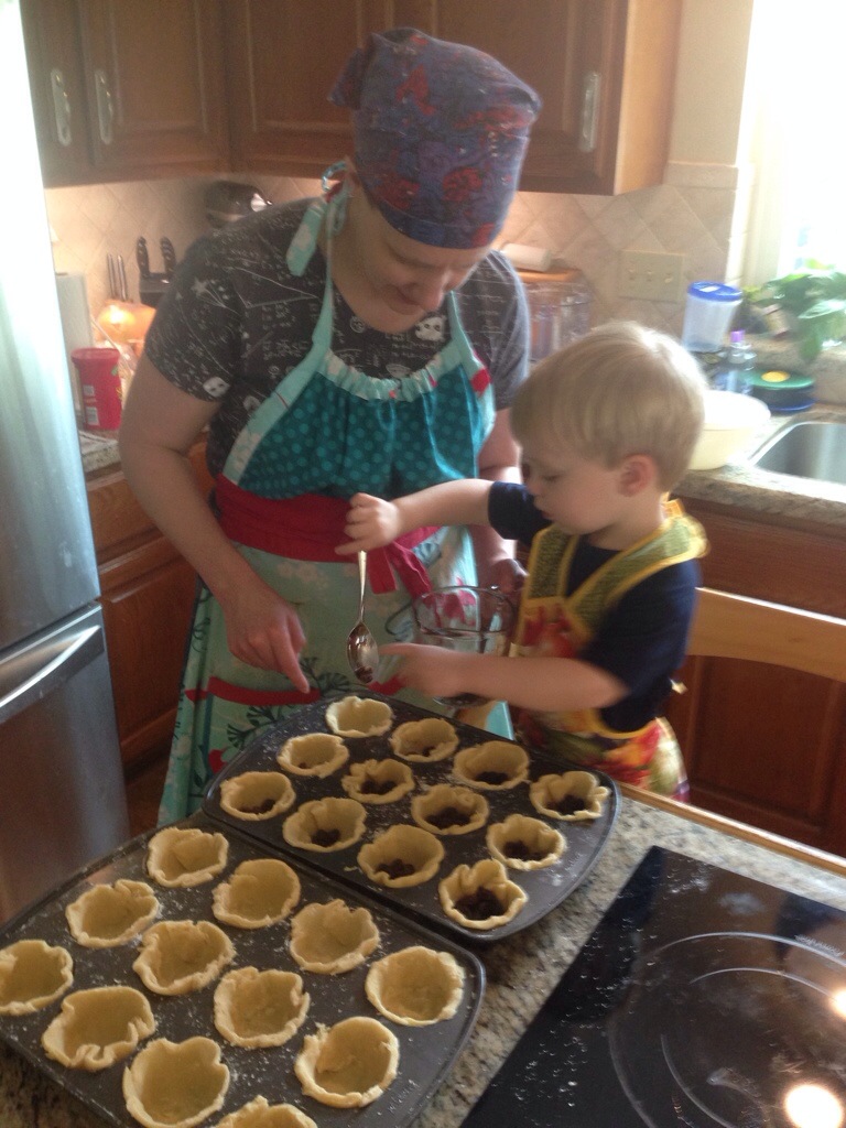 Prep for International Night at the school Colin helped prepare the Butter Tarts for tonight’s potluck supper at school.