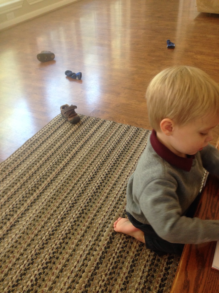 Home from school First thing to do when you get home, take off shoes AND socks. Neither of the kids can keep socks on, ever!
