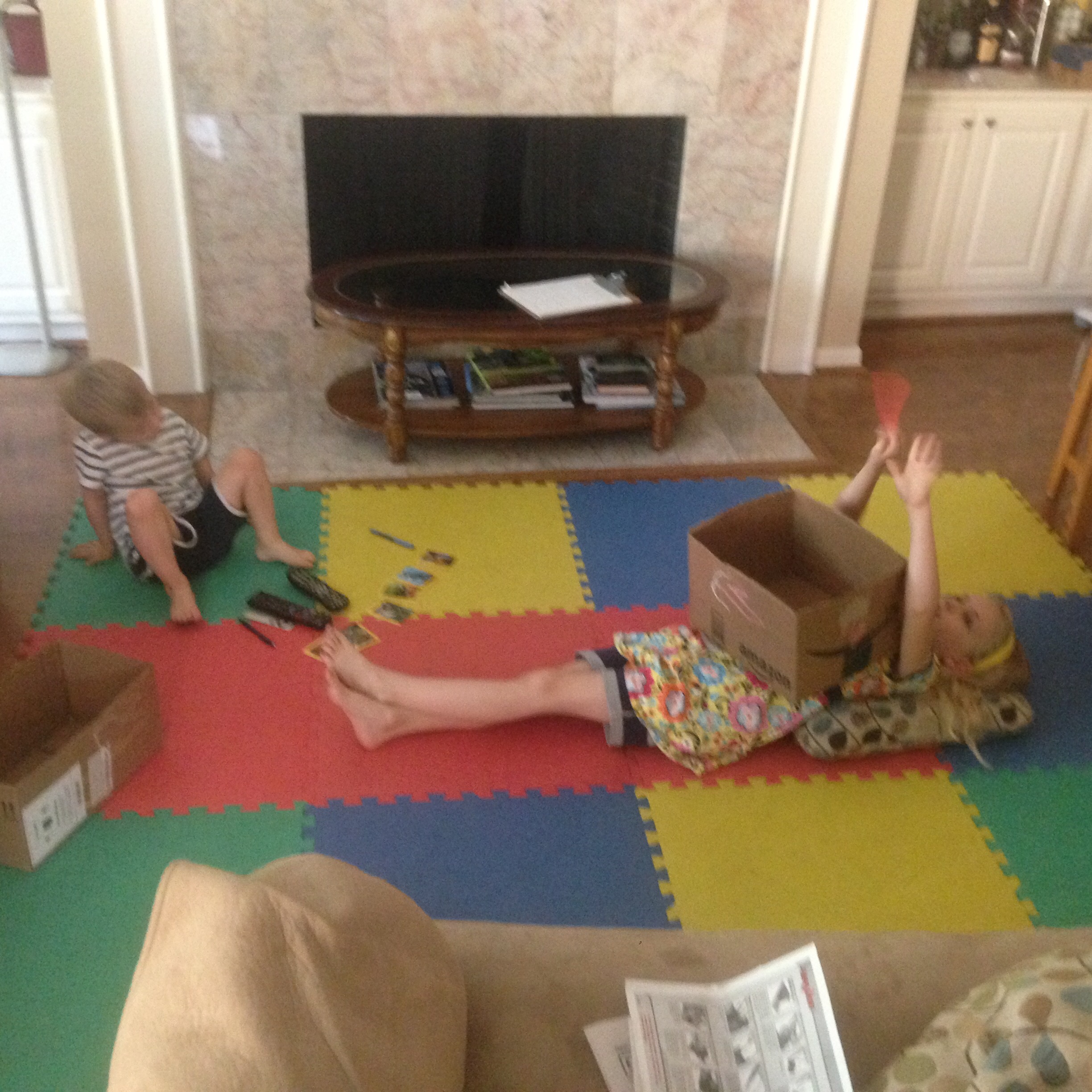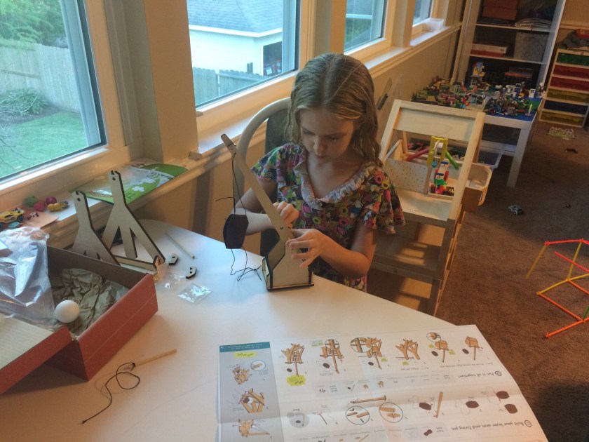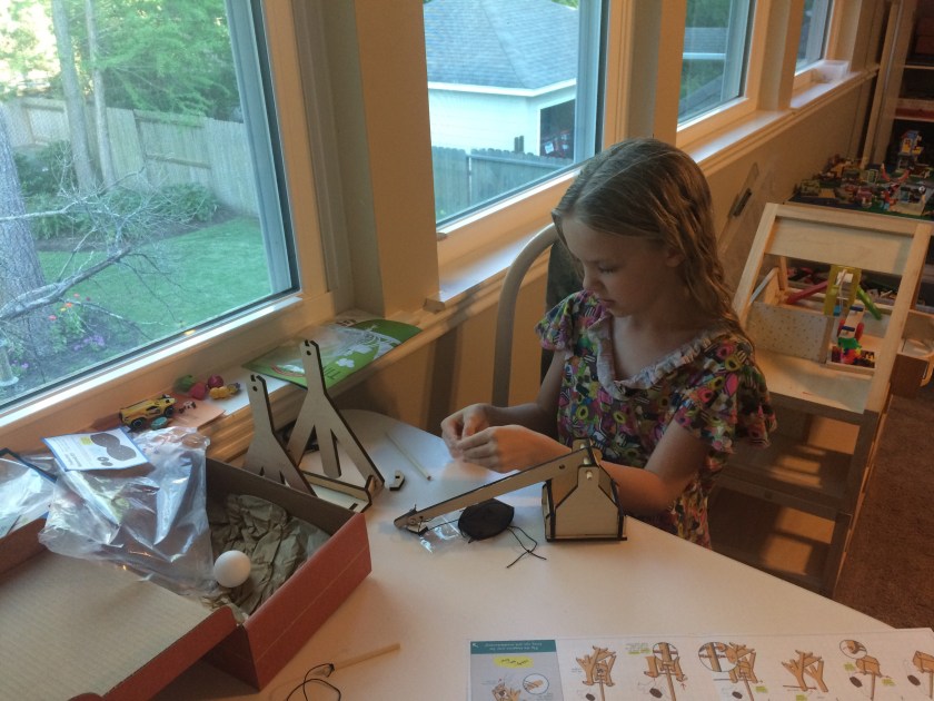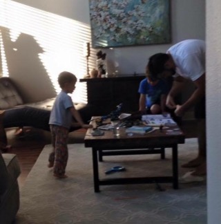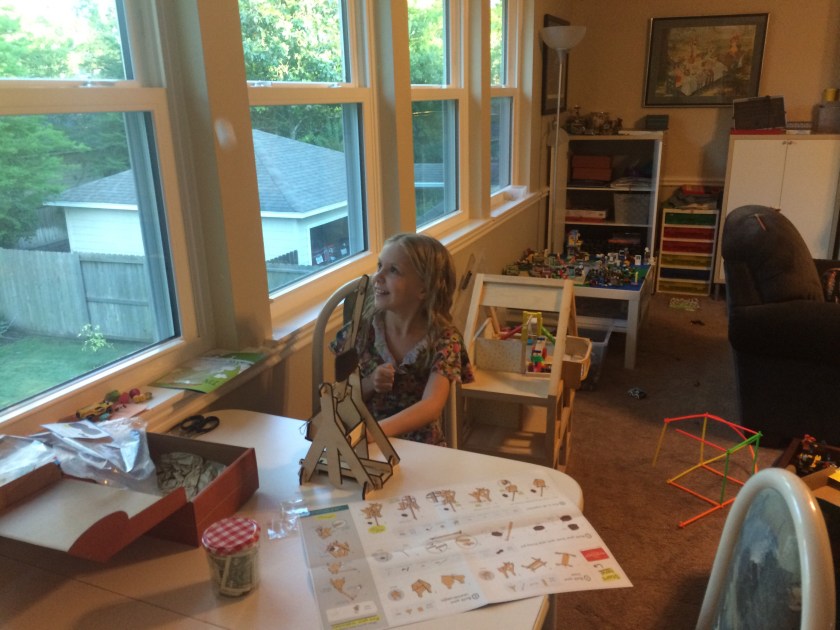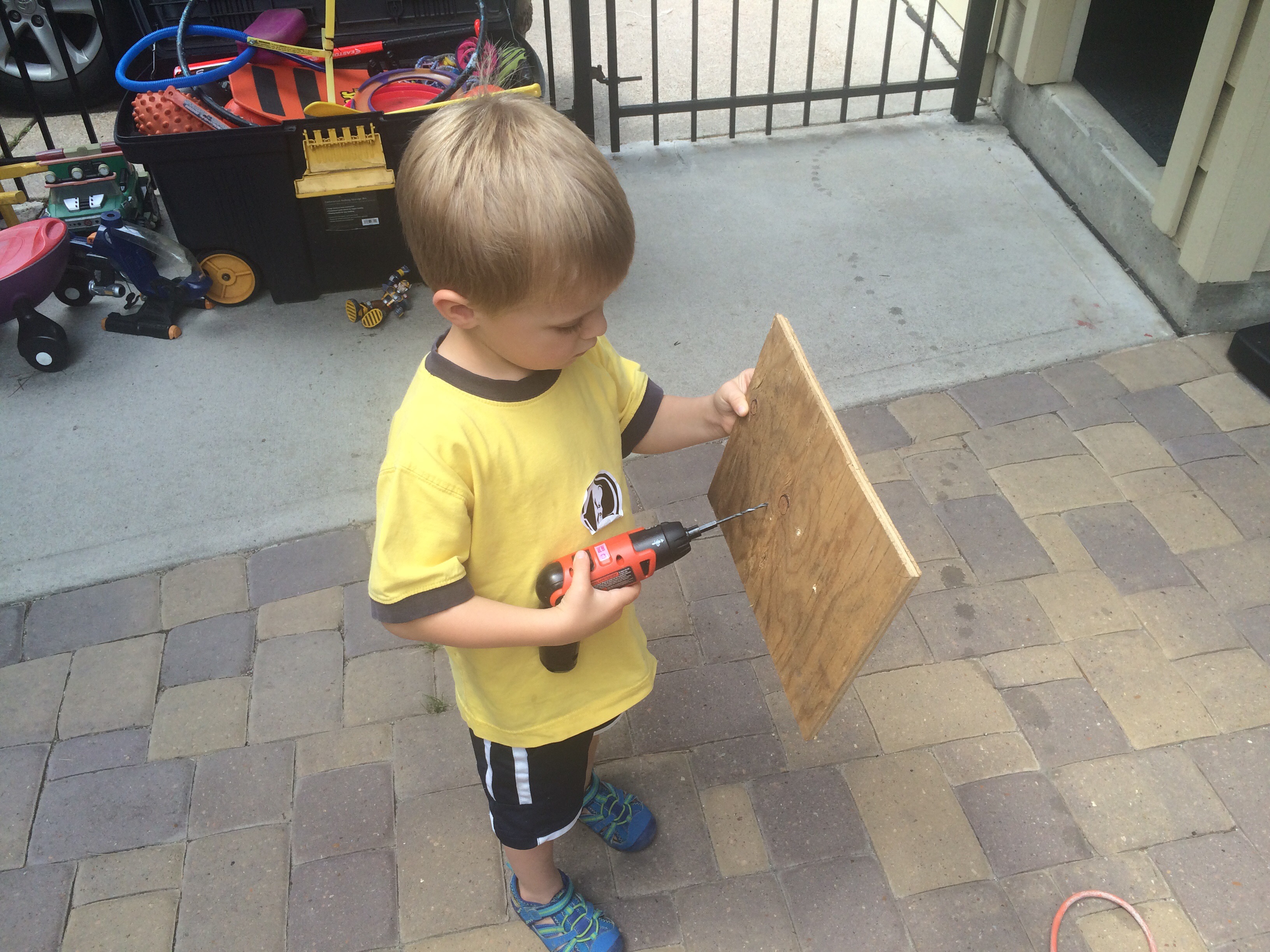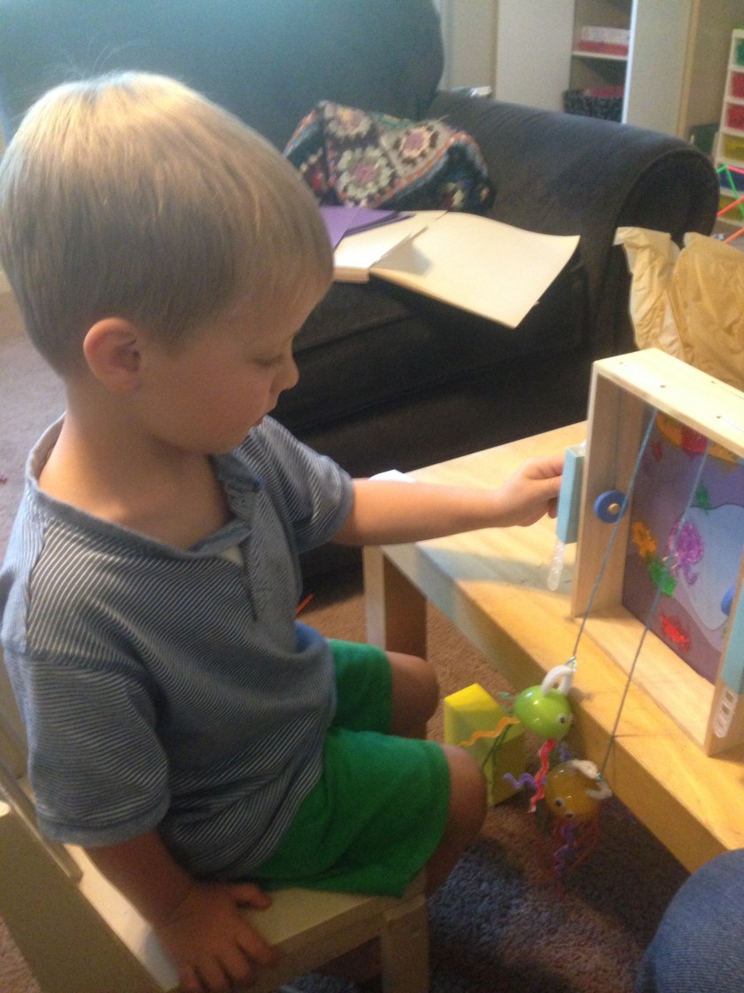It’s a monster truck, being driven by his favorite monster truck (Dragon). The truck’s name is MoonStern and it has a rocket on the top so it can fly to the moon. It had to be blue. And it’s doing a wheelie over a pile of dirt, of course.