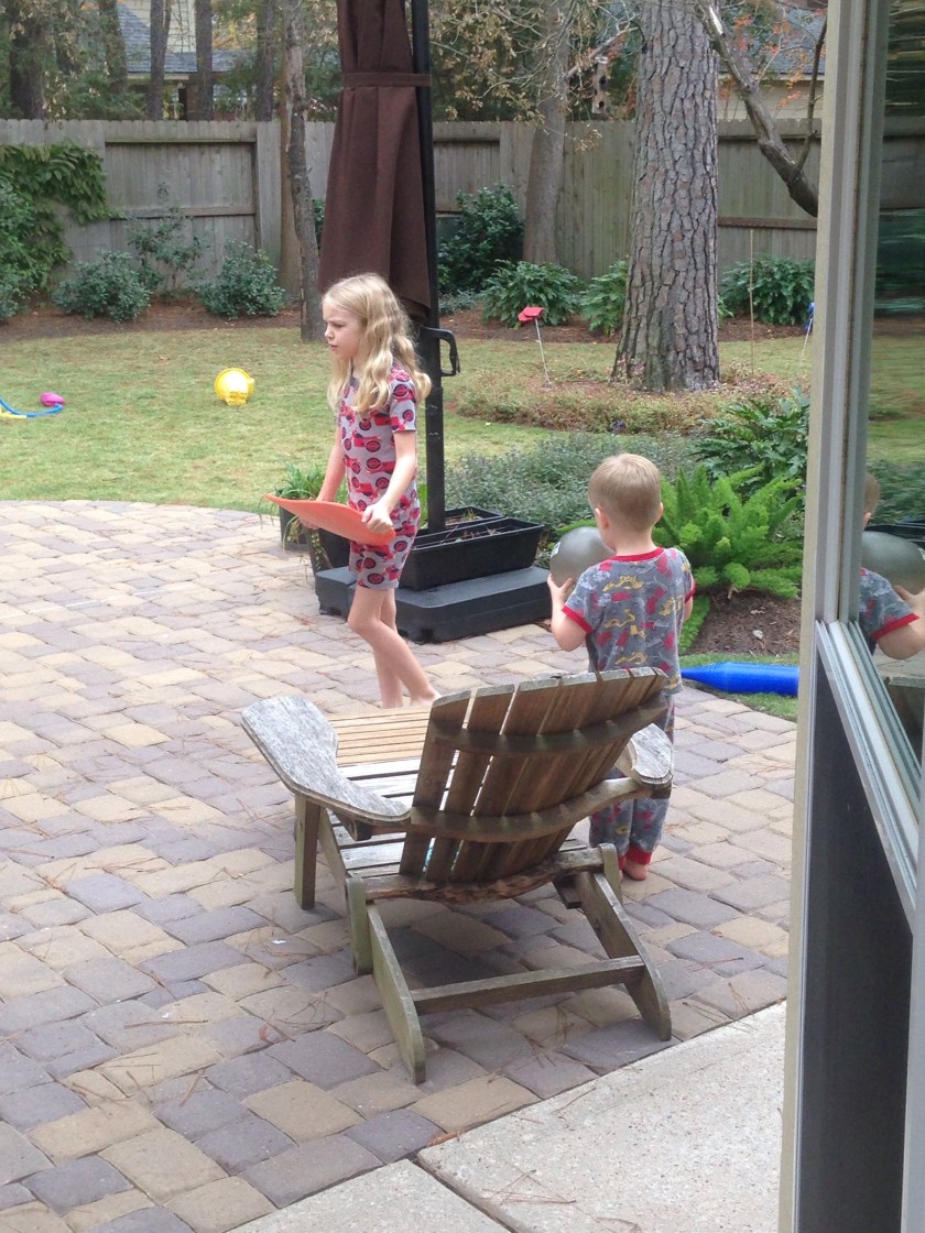 It’s December 12th and the kids didn’t want to get dressed yet, so headed outside after breakfast to play. It’s 25C outside so we decided shoes and coats weren’t necessary.