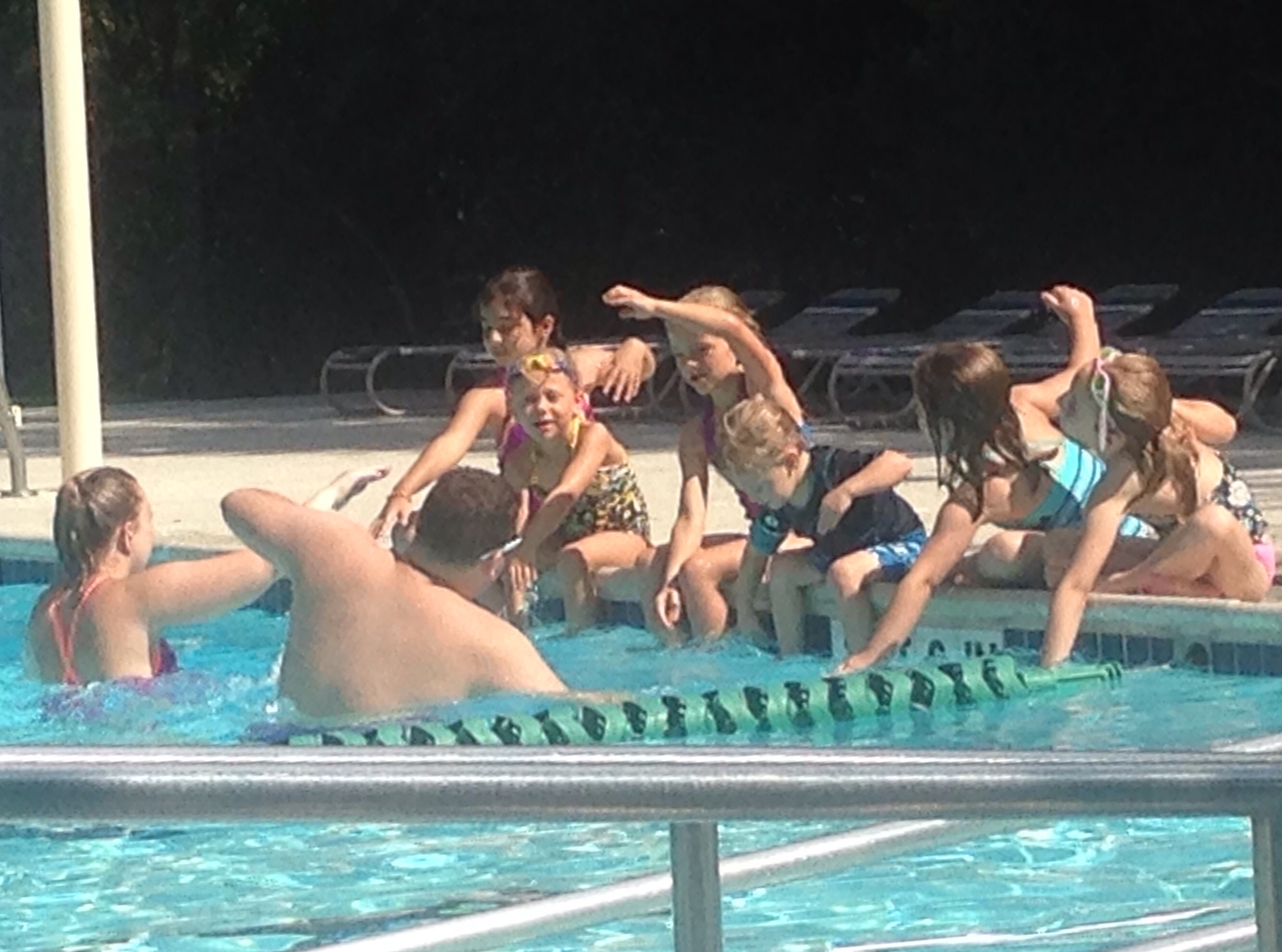 Colin seems to be holding his own in a class with many taller students. Unfortunately this means he has to hold tight to the side whe others can stand while waiting for the next turn. He’ll have strong arms