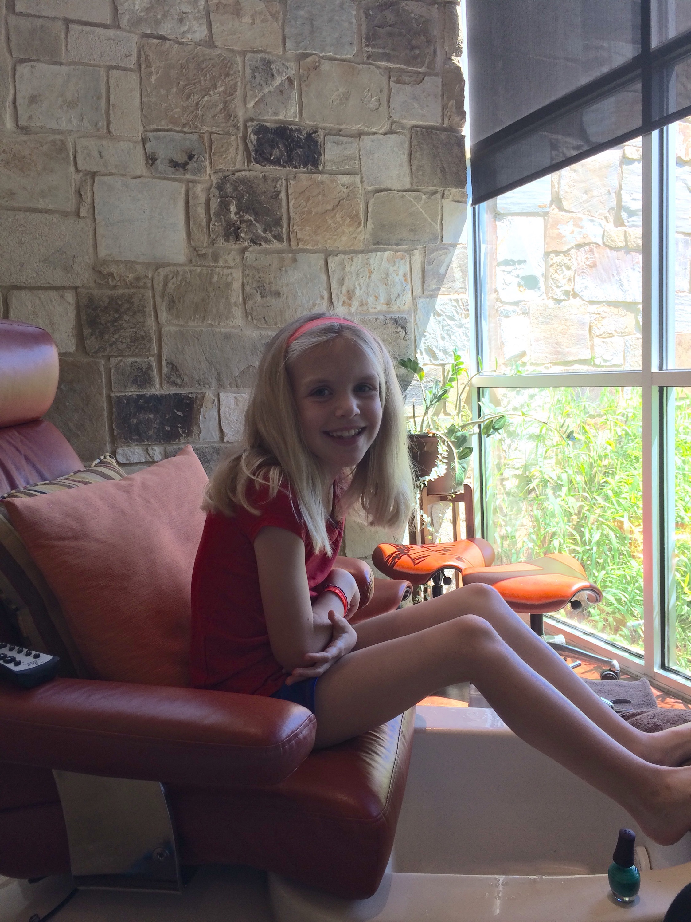 Proud of her pedicure