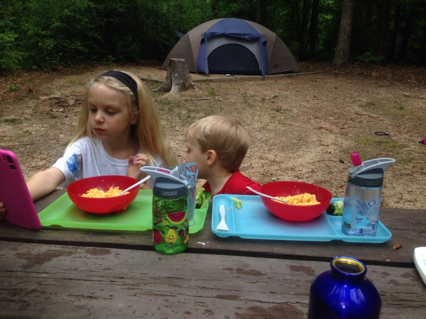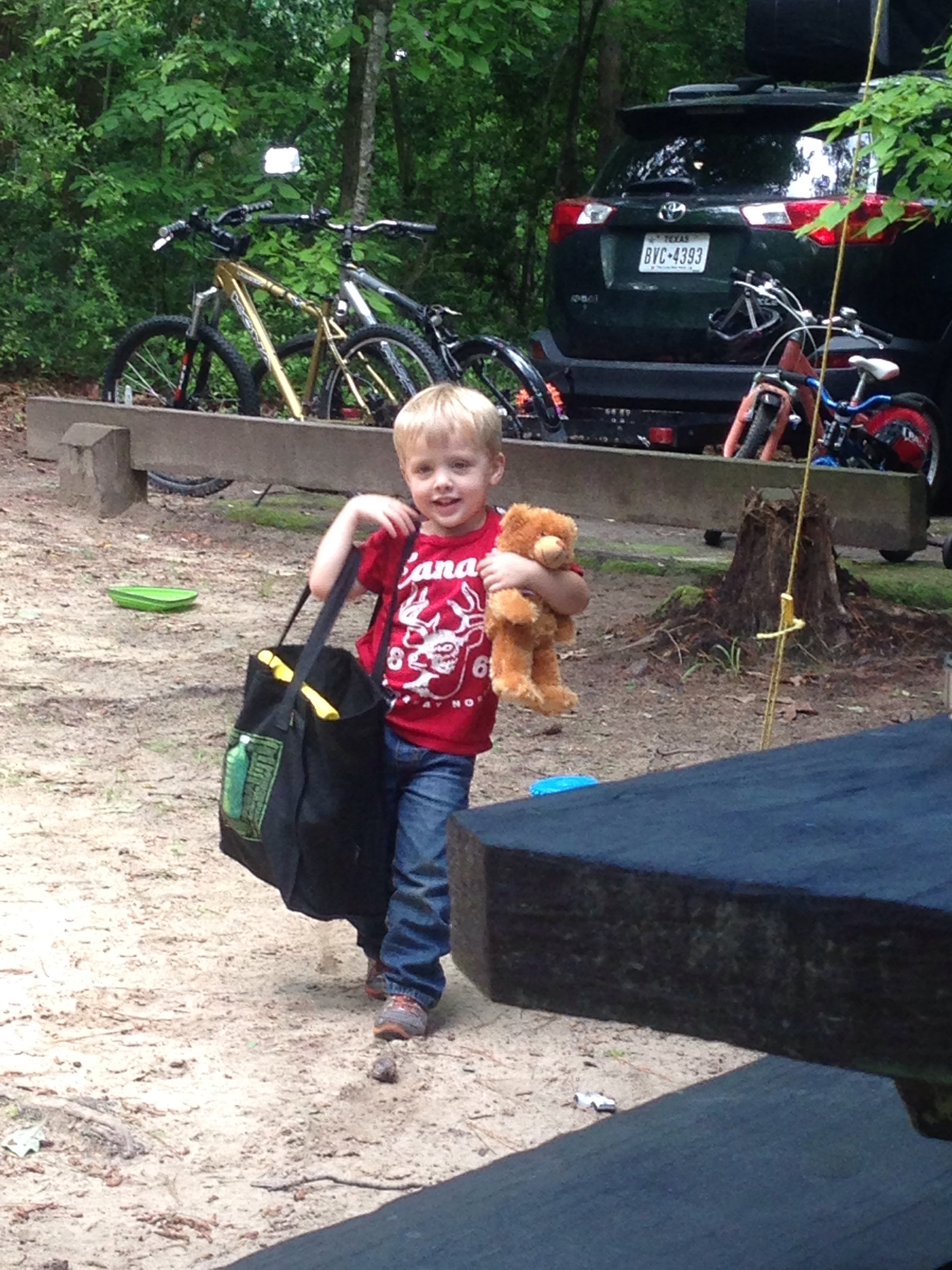 the weather forecast is terrible but we came anyway. Having fun in a damp camping weekend.
