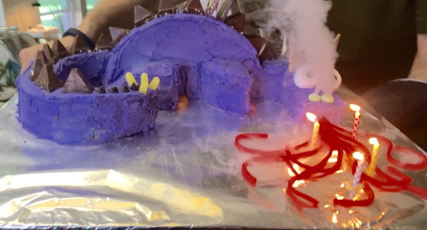 Colin had a great day with his new toys, friends over for a party and of course the fire breathing dragon cake.