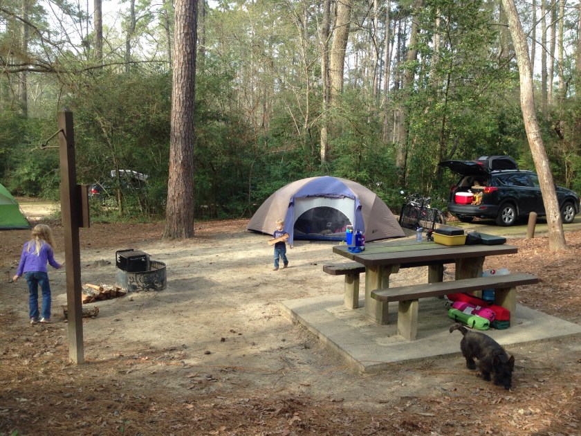 Sarah is away on a business trip so the kids and I decided to start spring break week with a camping trip. 26C in the days and 15C at night is working out well. The first evening is a success.