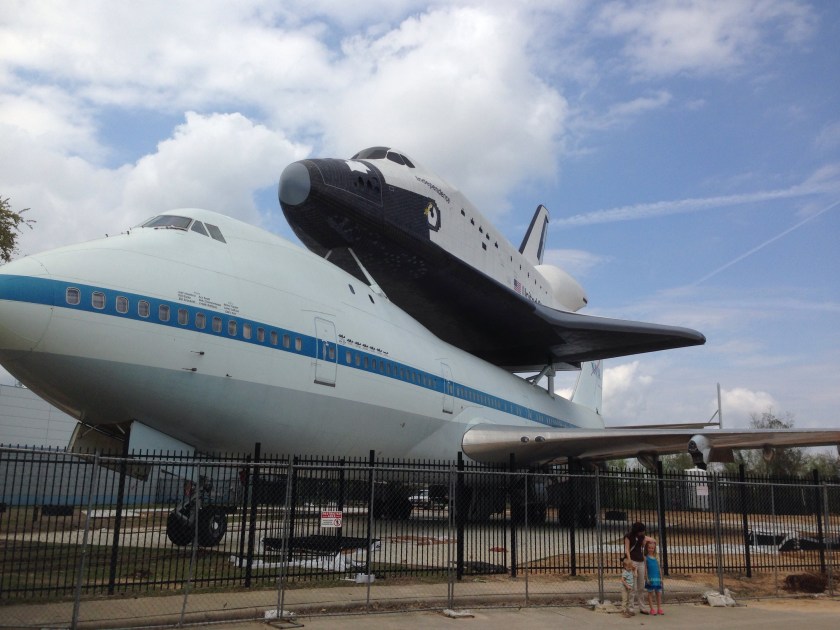 We spent the afternoon taking Liz to the Space Center Houston. The real 747 shuttle carrier is the newest exhibit and the “shuttle” on top is the display model that used to be at Kennedy Center in Florida (Explorer/Independence).