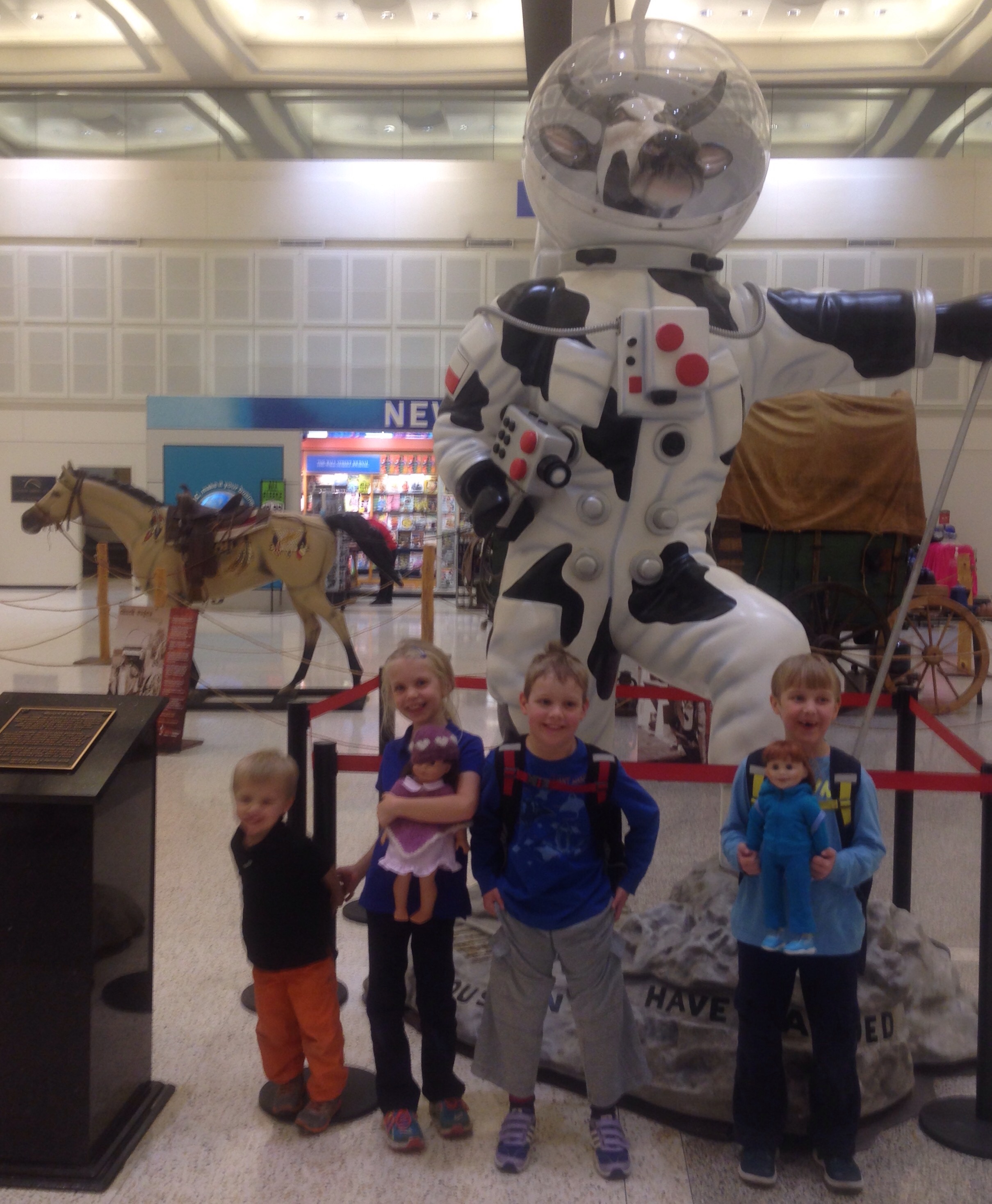The kids are excited to be back together again. We had to take the second yearly picture in front of the Space Cow (and the Chuckwagon in the background).