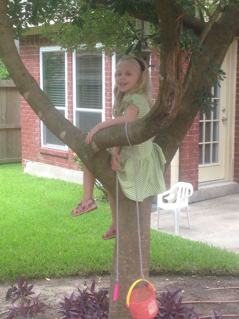 Reading Enid Blyton’s Famous Five has had a positive affect in Laura. After reading how Julian was able to climb on too of his caravan she tied a rope to the tree and climbed up.