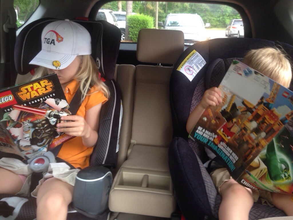 Making friends Colin will make friends anywhere! We are waiting to get into the Lego monthly free build, and Colin sits down with the boy waiting in line behind us. Of course that leads to this Wednesday morning school drop off.