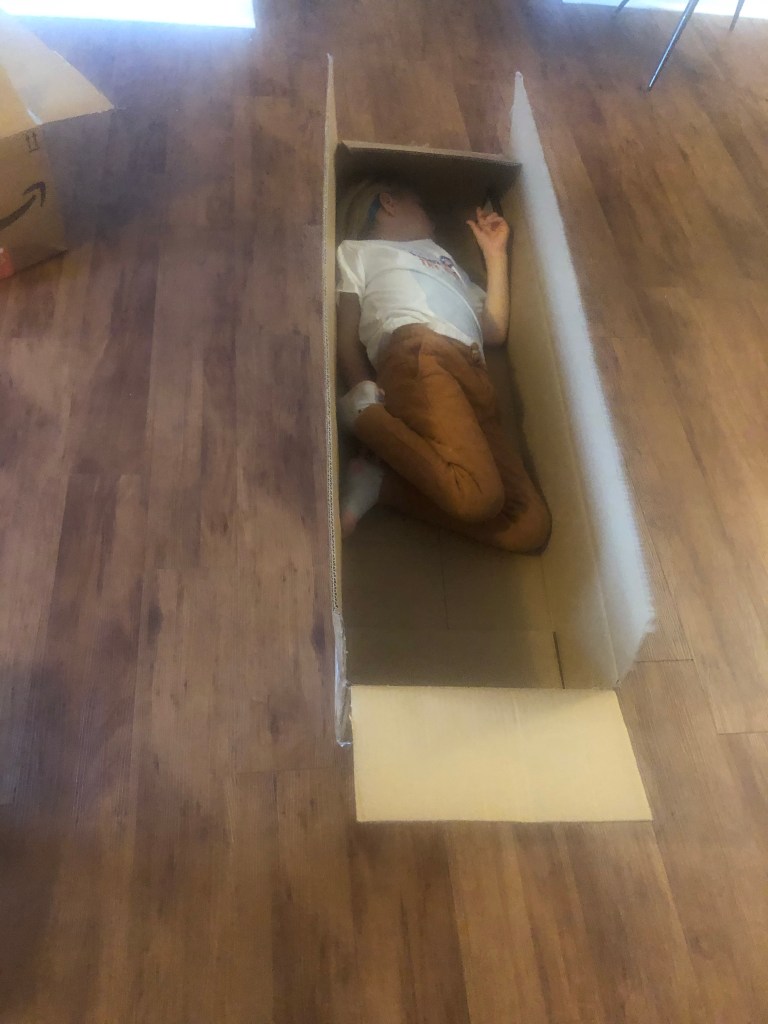 Colin spent some of his Christmas money on this “Giant Inflatable Unicorn.” He bought it in Melbourne in anticipation of having a pool in Houston and has been excitedly waiting for it to be unpacked.